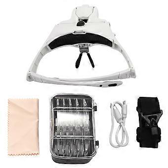 Freihändige Kopfbandlupe, USB-Ladekopflupe mit LED-Licht Schmuck Basteluhr Hobby 5 Linsen 1,0 x 1,5 x 2,0 x 2,5 x 3,5 x