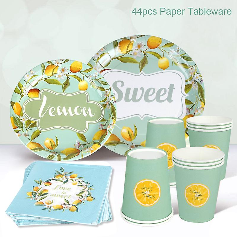 Frigg Yellow Green Lemon Disposable Tableware Set Paper Plate Cup Napkin Birthday Party Decorations Kids Lemon Party Supplies