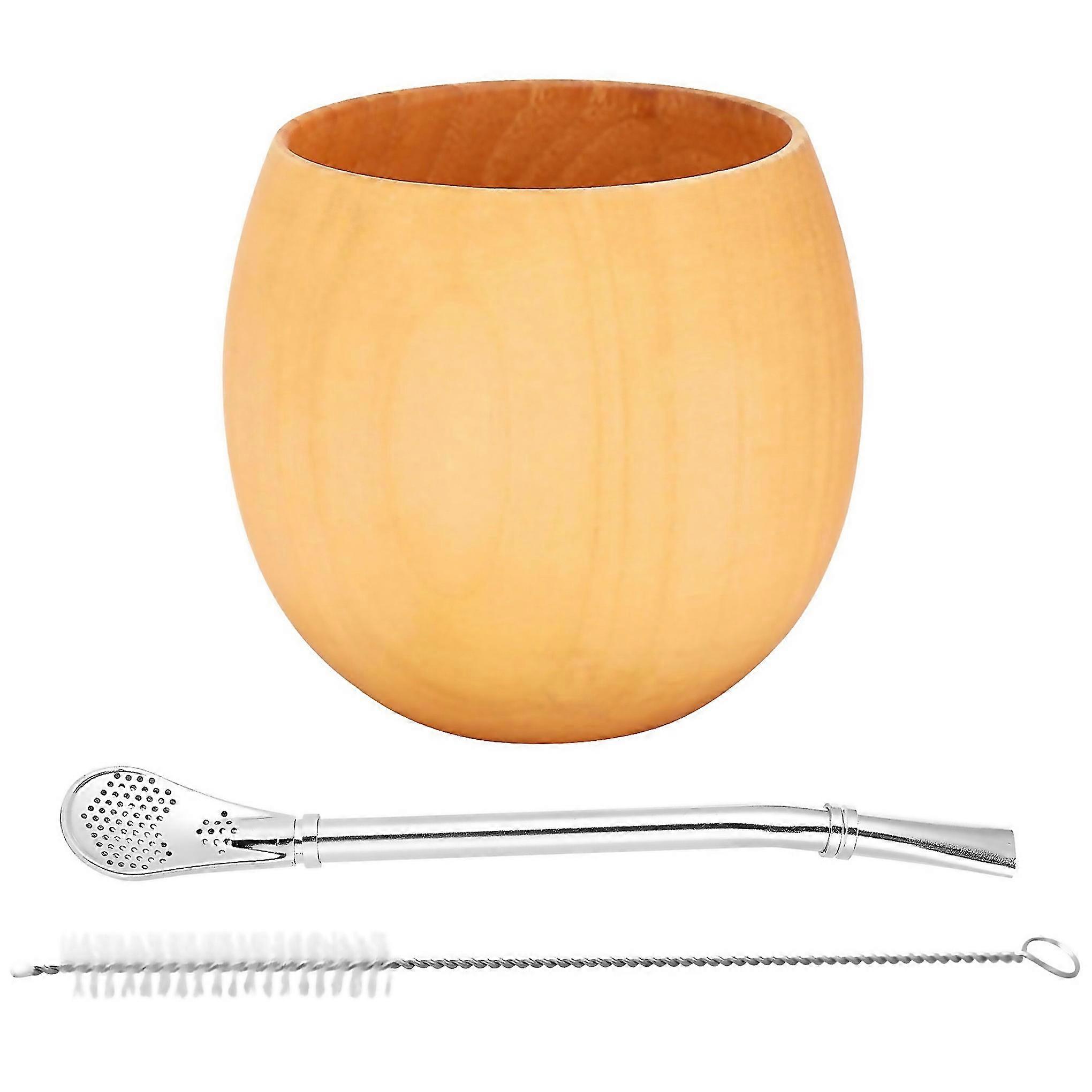 For Handmade Wood Coffee Water Cup With Spoon Straw Brush 200mllight