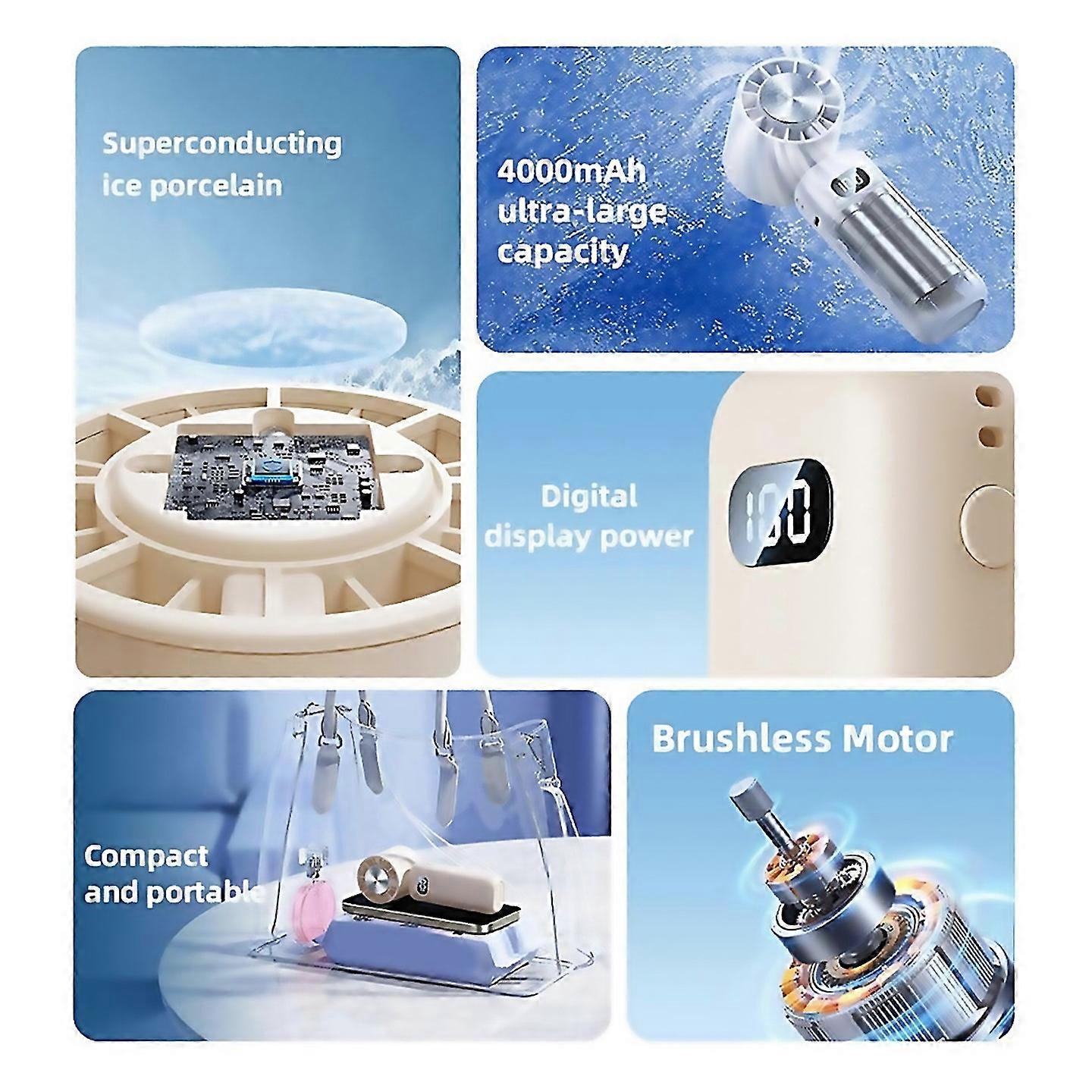 For Ice Compress Mini Fan Mini Folding Digital Display Mute Desktop