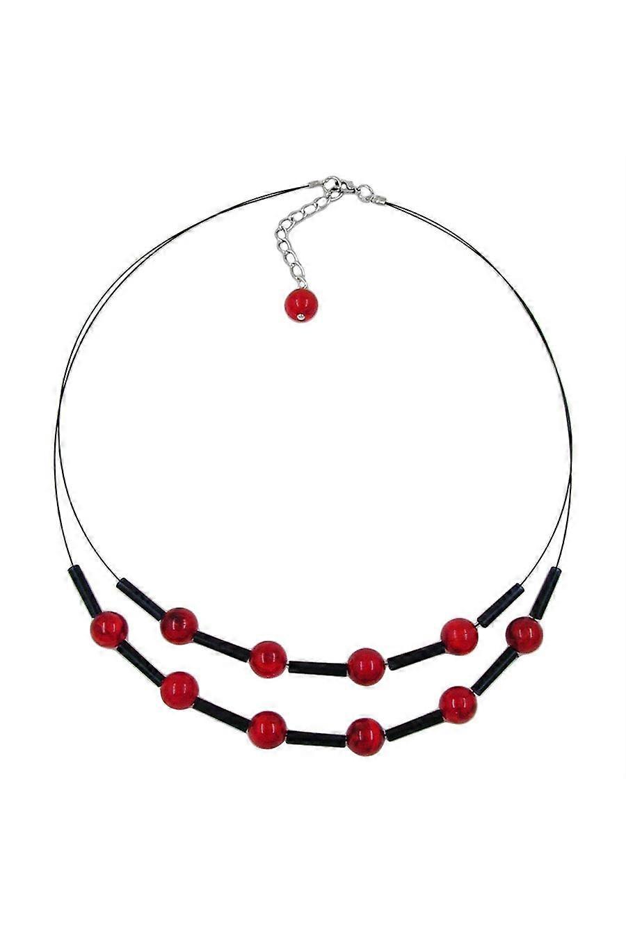 Necklace Red Black Beads On Coated Flexible Wire - Gl05879