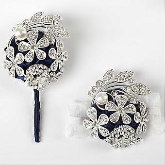Handgelenk Corsage mit Perlen und Strasssteinen Hochzeit, Party Corsage und Corsage Set (Marineblau, 2 Stück)