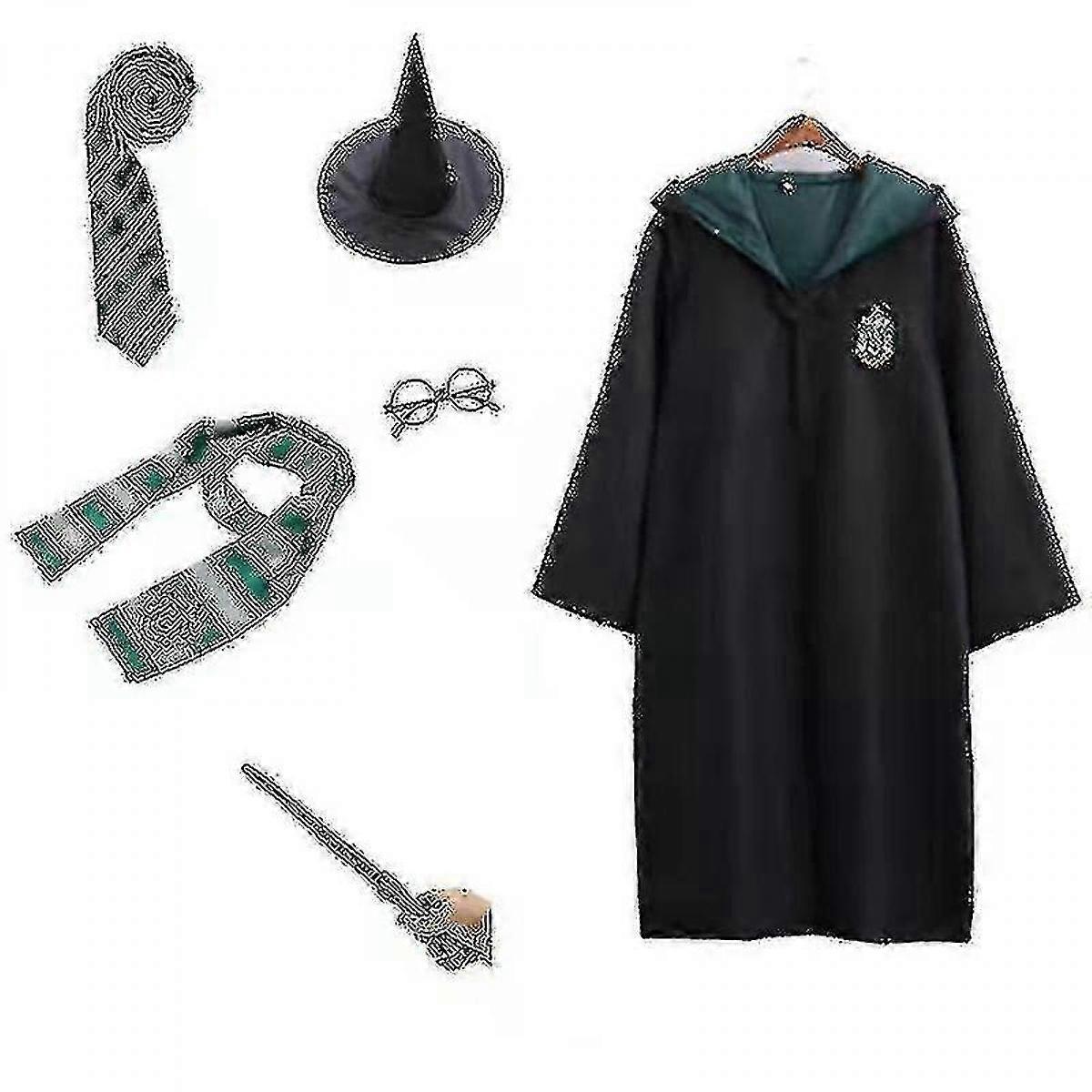 Harry Potter 6pc Set Magic Wizard Cosplay Fancy Dress Cape Cloak Costu-p