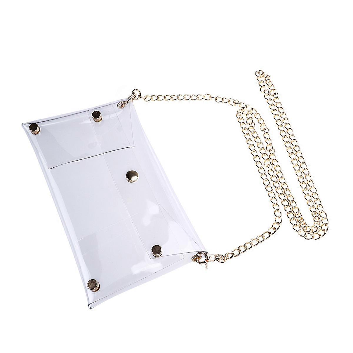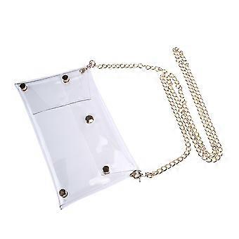 Here's a polished and professional product description based on your title: **Transparent PVC Candy Color Clutch Bag with Chain Strap – Elegant