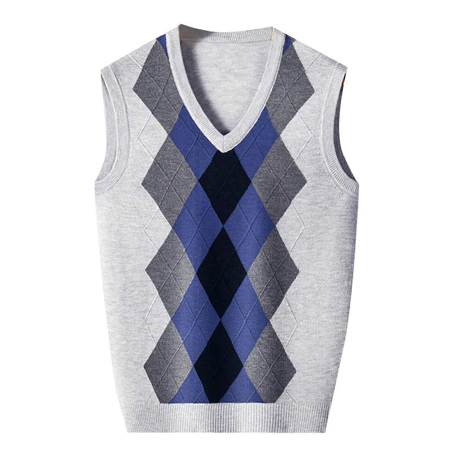 Men’s Sleeveless Cardigan Fine Knit V-Neck Vest Winter Jumper Slim Fit Casual Business Knitted Pullover White M