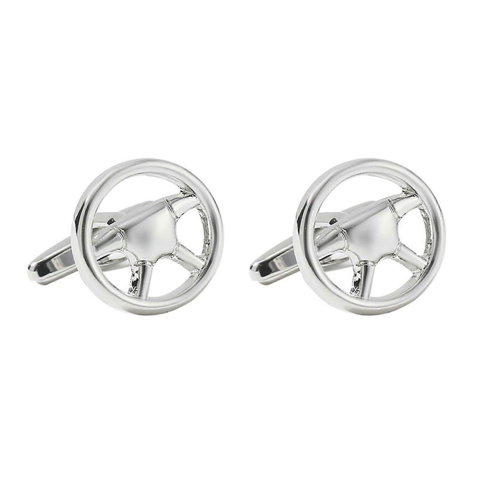 Men's Steering Wheel Cufflinks Silver Shirt Cufflinks with Gift Box.