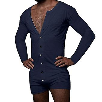 Herren Onesie Pyjamas Henley Jumpsuit Button Down Nachtwäsche