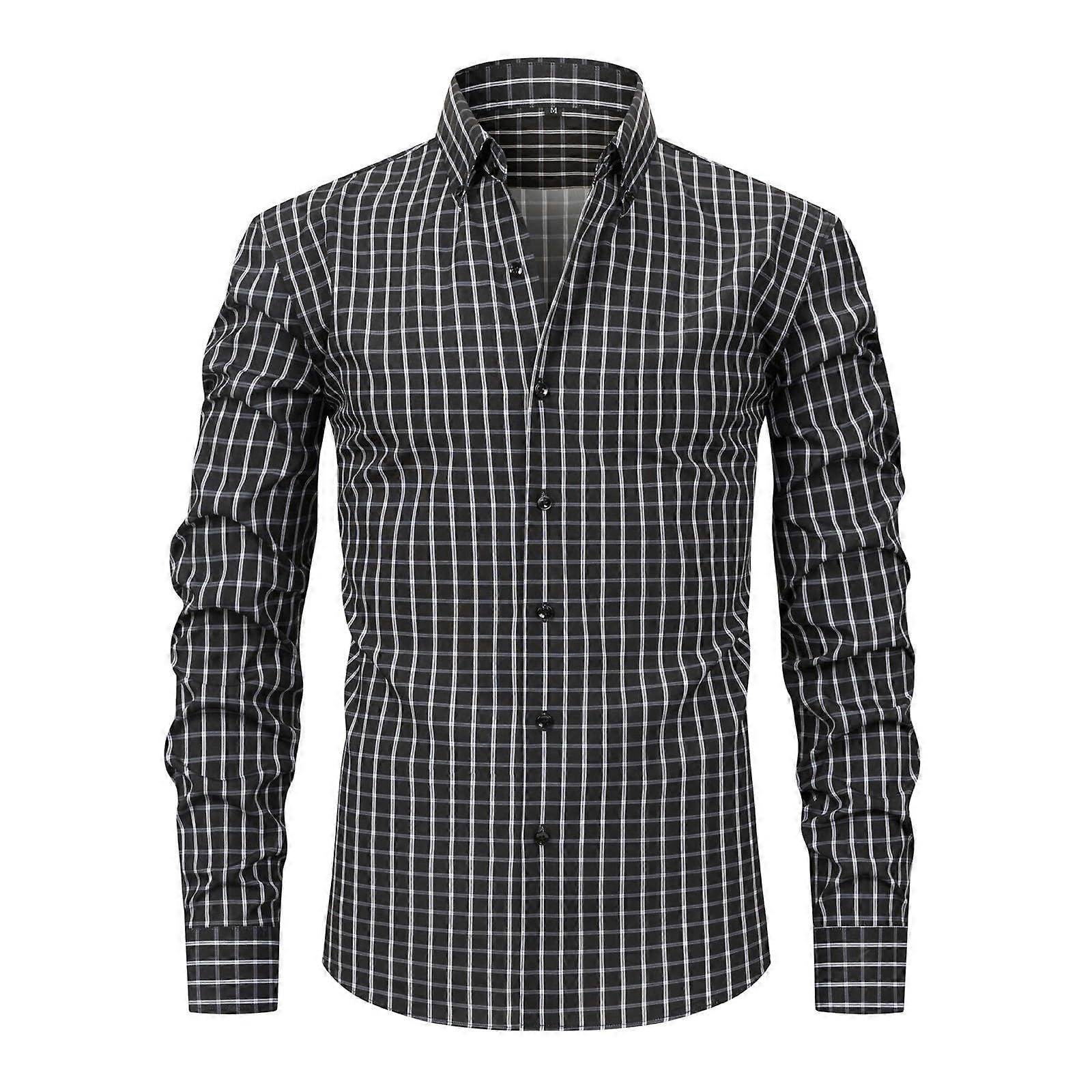 Men's Traditional Shirt Long Sleeve Checked Oktoberfest Bavarian Casual Regular Fit ButtonDown Lapel 3XL Black