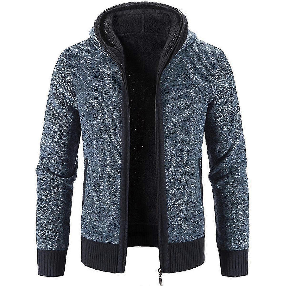 Mens Winter Hooded Thick Cardigan Fleece Lined Knit Sweater (XIATIAN)
