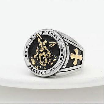 Ring mit der Figur des Erzengels Michael, der Satan besiegt – Edelstahl, Amulett, Silber/Gold, Größe 12