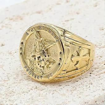 Herren-Edelstahl-Amulettring mit dem Erzengel Michael, der Satan besiegt – Gold 2-9
