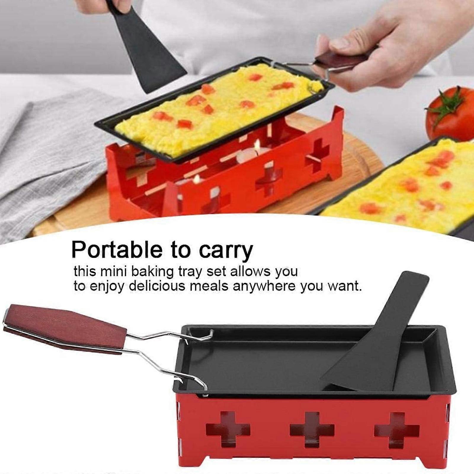 Hilingoto Mini Portable Non-Stick Cheese Grill Stove with Wooden Handle (Red) + Rack, Tray, Scraper - Clearance!