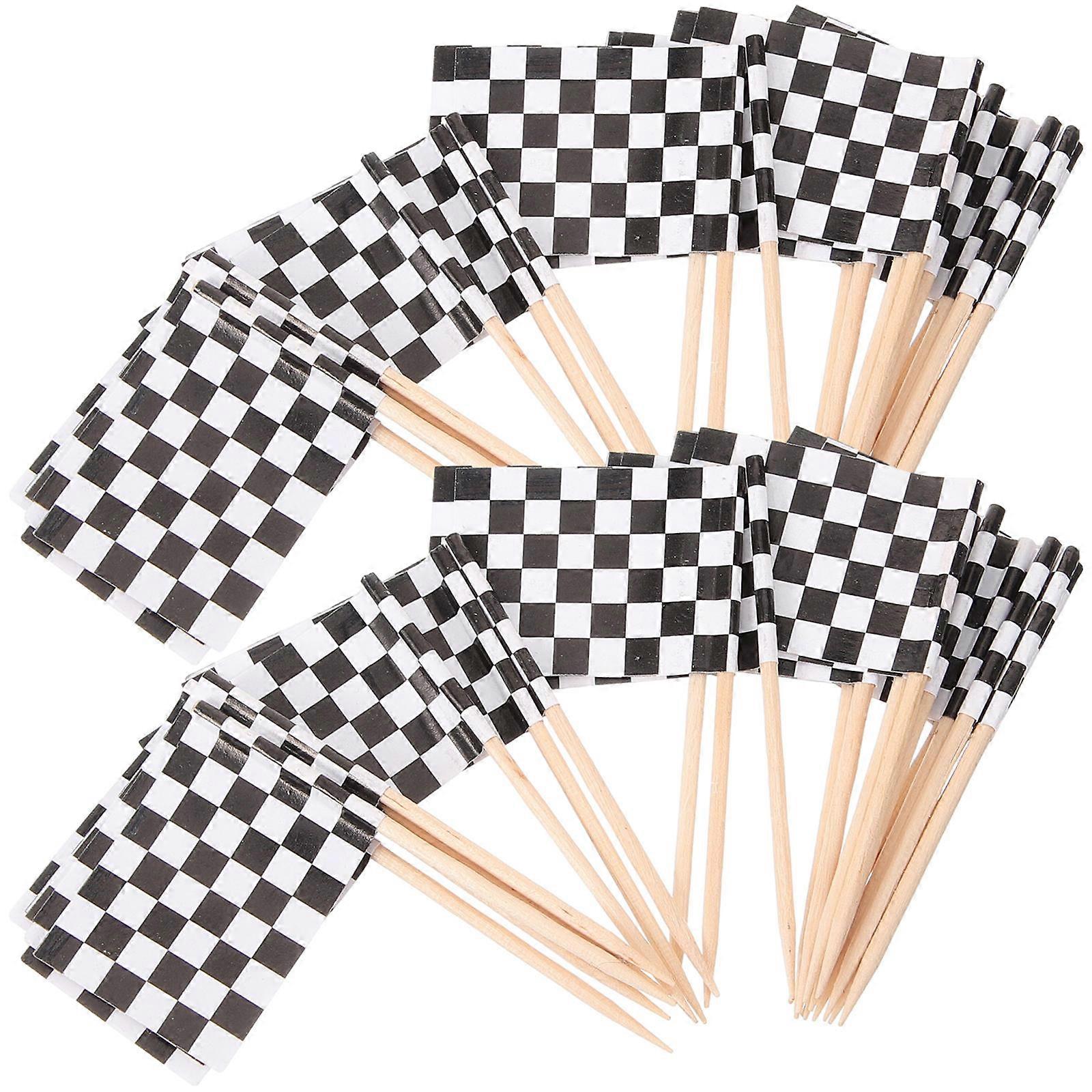 Wood Toothpicks Fruit Pick for Eating Food 2Pcs Pack of Checkered Flags