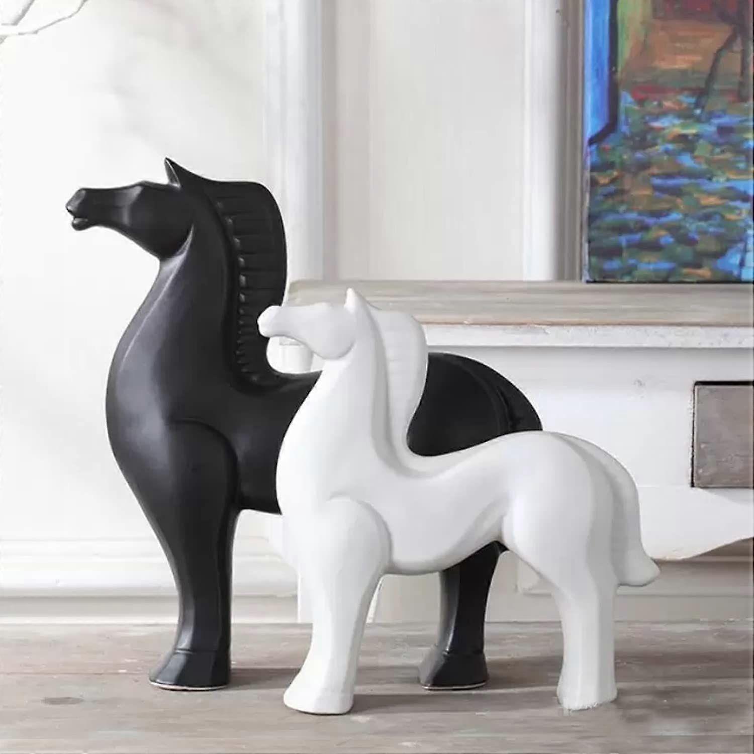 Home Decor White and Black Resin Horse Figurines - (Pack of 2, Black & White)
