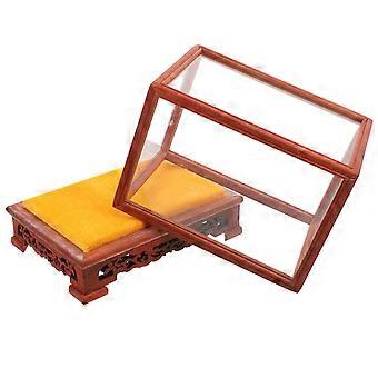 Home Display Box for Decor Transparent Glass Display Case Red Wood