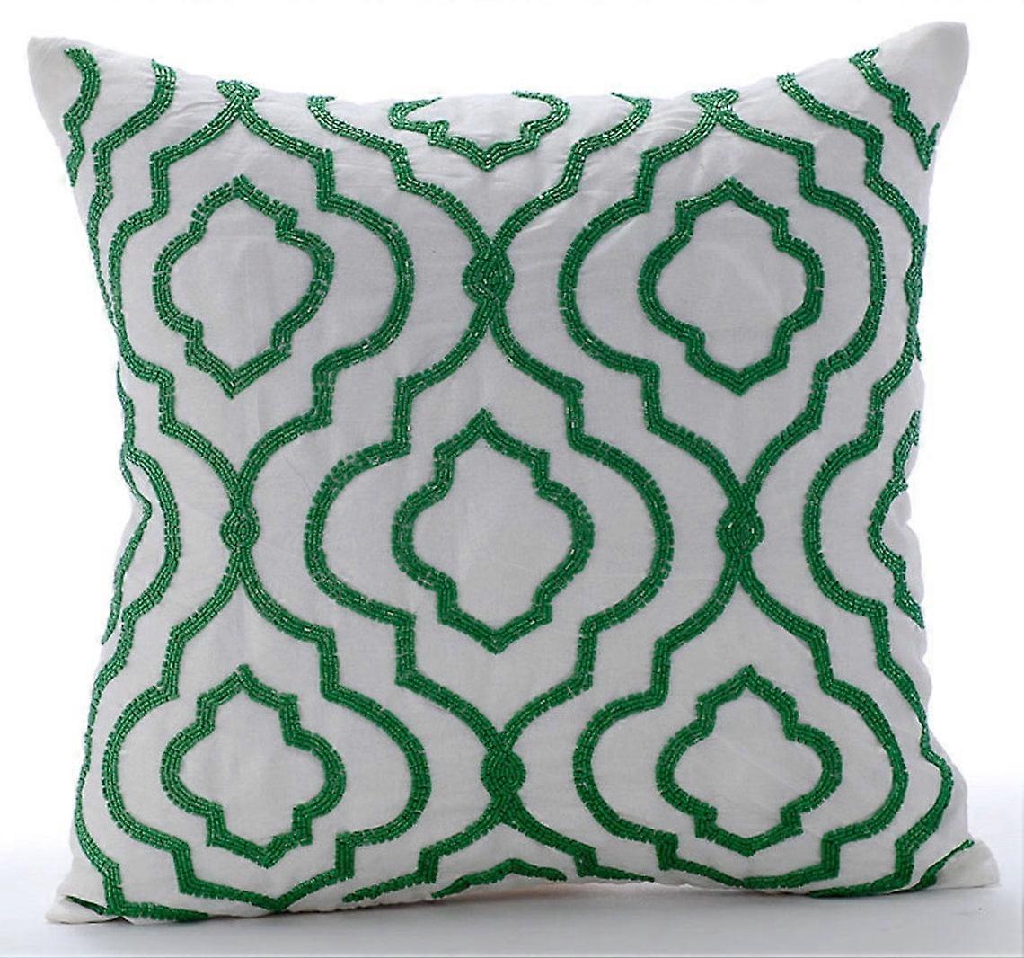 HomeCentric Cushion Covers for Couch, Pack of 2, 22x22 inch, Royal Green, Beaded Lattice Design, Art Silk Square - Compatible with Home Decor