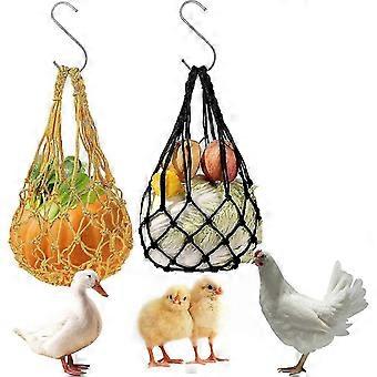 Hühnerfutterautomat, 2PCS hängende Netztasche für Hühner, automatischer Hühnerfutterautomat, hängender Futterspieß, Anti-Abfall-Netzbeutel für Obst und Gemüse
