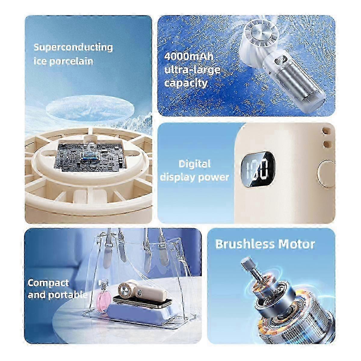 Ice Compress Mini Fan Cooling Handheld Fan Mini Folding Digital Display Mute Desktop Fan Ice Compress Neck Fan,B