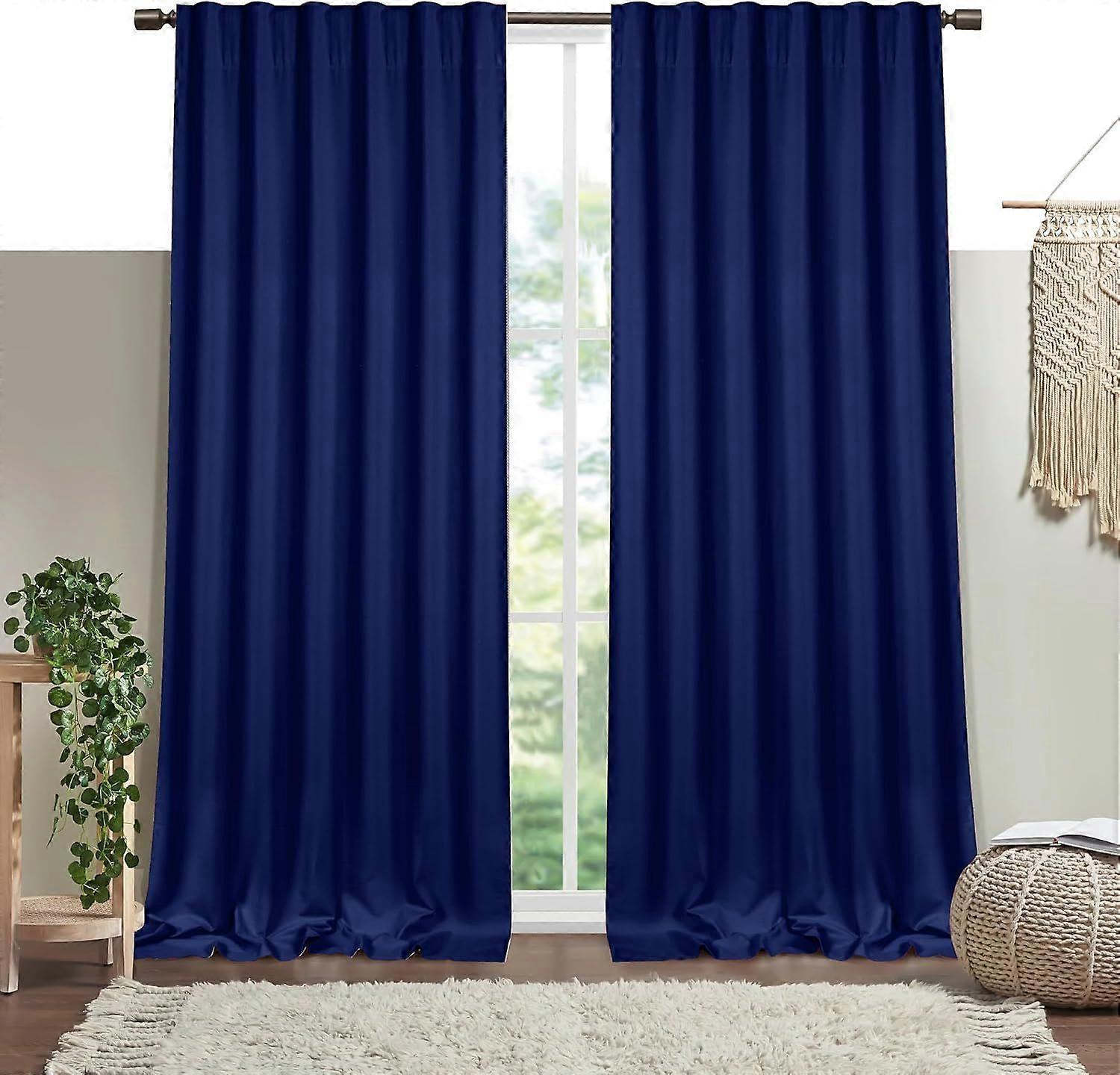 Indigo Blue Solid Panel Curtains, 84 Inches Long, Set of 2, 100% Cotton, Light