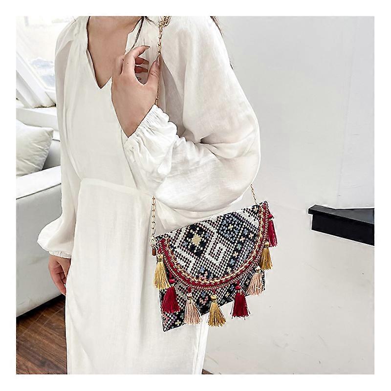 Design i etnisk stil: Den här snygga kuvertväskan har invecklade etnisk-inspirerade mönster som ger en touch av bohemisk chic till alla kläder. Den unika designen är iögonfallande och perfekt för dig som uppskattar handgjord estetik. Mångsidig och rymlig: Trots sin kompakta storlek erbjuder den här väskan gott om plats för dina nödvändigheter. Den passar bekvämt till en telefon, plånbok, nycklar och små sminksaker, vilket gör den idealisk för vardagsbruk eller en utekväll. Högkvalitativa material: Tillverkad av en blandning av vävt tyg och polyester, den här väskan är gjord för att hålla. Materialen är mjuka vid beröring men ändå tillräckligt tåliga för att motstå dagligt slitage, vilket säkerställer långvarig njutning. Specifikationer: Storlek: Längd: 25cm Bredd: 20cm Höjd: 3cm Material: Vävt tyg+polyester I paketet ingår: Väska x1