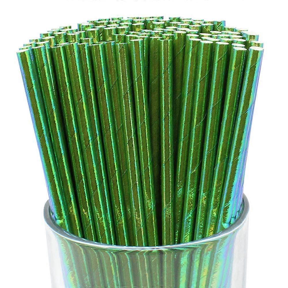 Iridescent Disposable Drinking Party Paper Straws (100pcs, Mermaid Green)