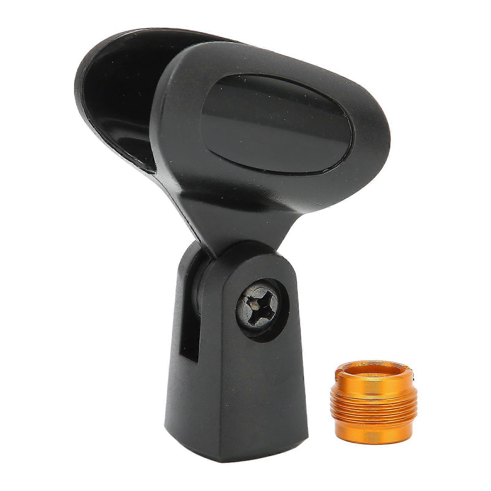 1QUALITY MATERIAL Hard and durable ABS and metal material, break resistant mic clip, can be used for a long time. 2WITH COPPER ADAPTER The mic clip comes with 5/8in male to 3/8in female copper adapter, which can match most mic stands. 3FIRMLY HOLD The mic holder clamp is designed to hold your microphone firmly and securely. 4INSTALL AND USE Install and fix the wired or wireless microphone to the stand clip, and then you can use it. 5APPLICATION The anti drop microphone holder is suitable for handheld wired or wireless microphones.