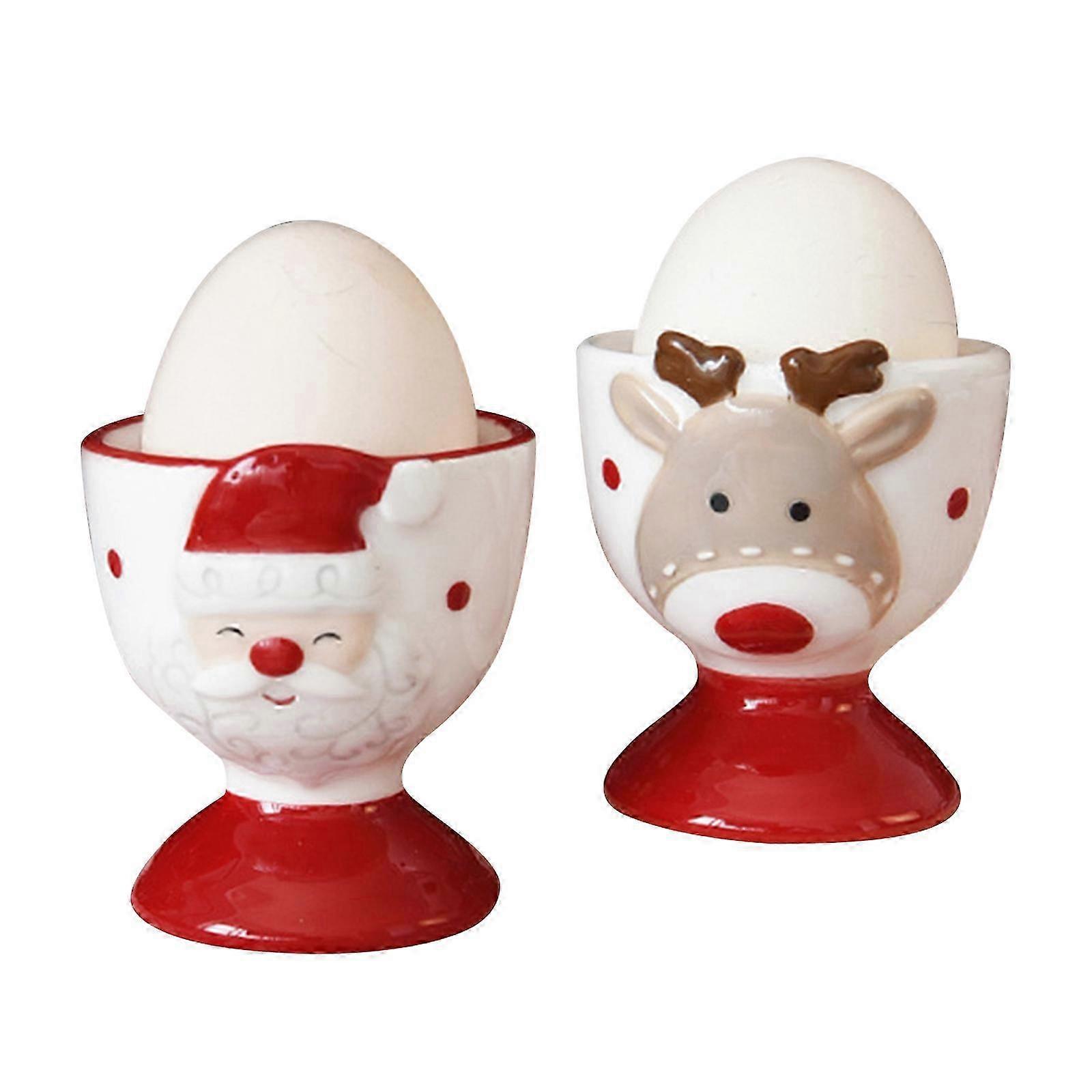 JiaWei 2pack Christmas Egg Cup,Funny Christmas Elk Egg Cup,Cartoon Santa Claus Egg Cups pKi