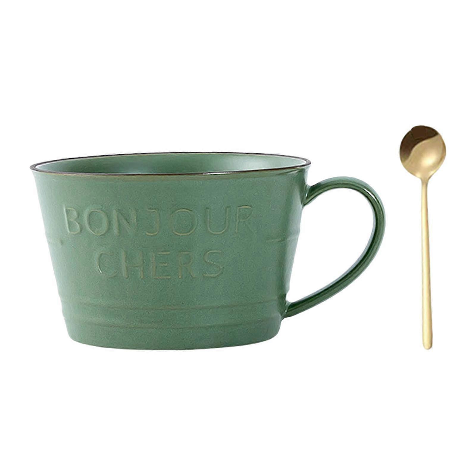 Coffee Mug with Spoon Breakfast Cup for Hot or Cold Drinks Cappuccino 400 ml Green