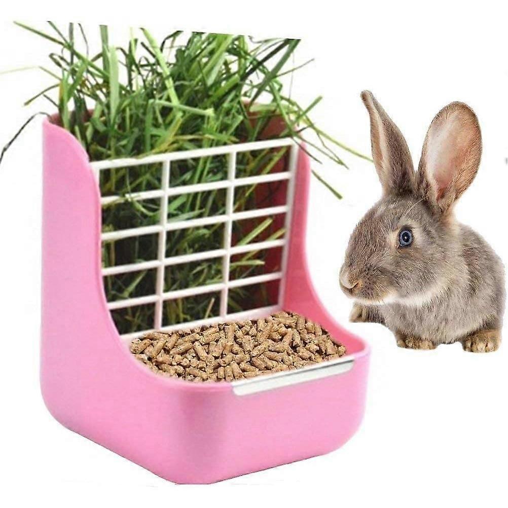 Rabbit Feeder, Guinea Pig Feeder, Hay Feeder for Small Animals (Pink)