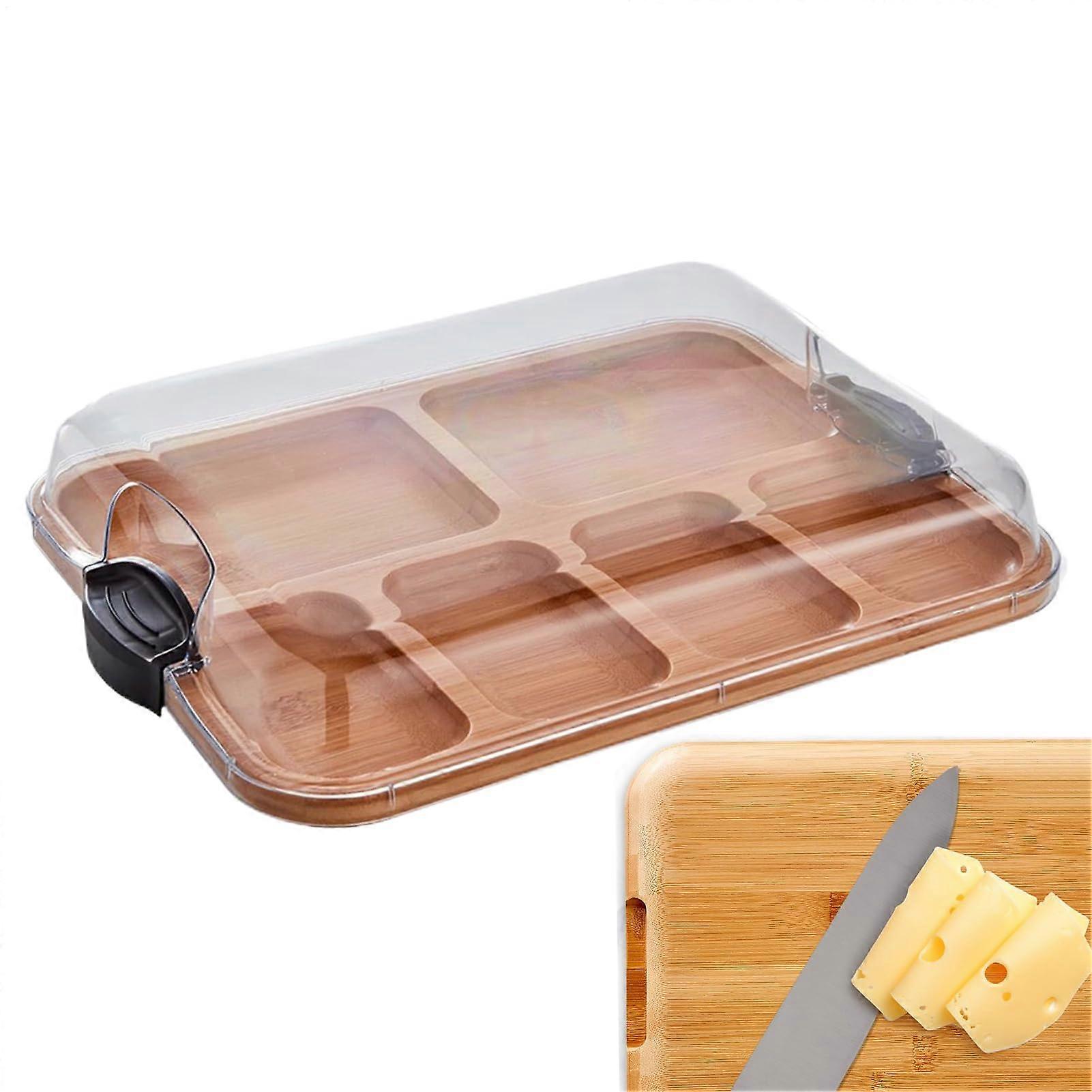 Cheese Board with Lid, Chopping Board, Serving Plate with 6 Compartments (15 x 11 Inches)