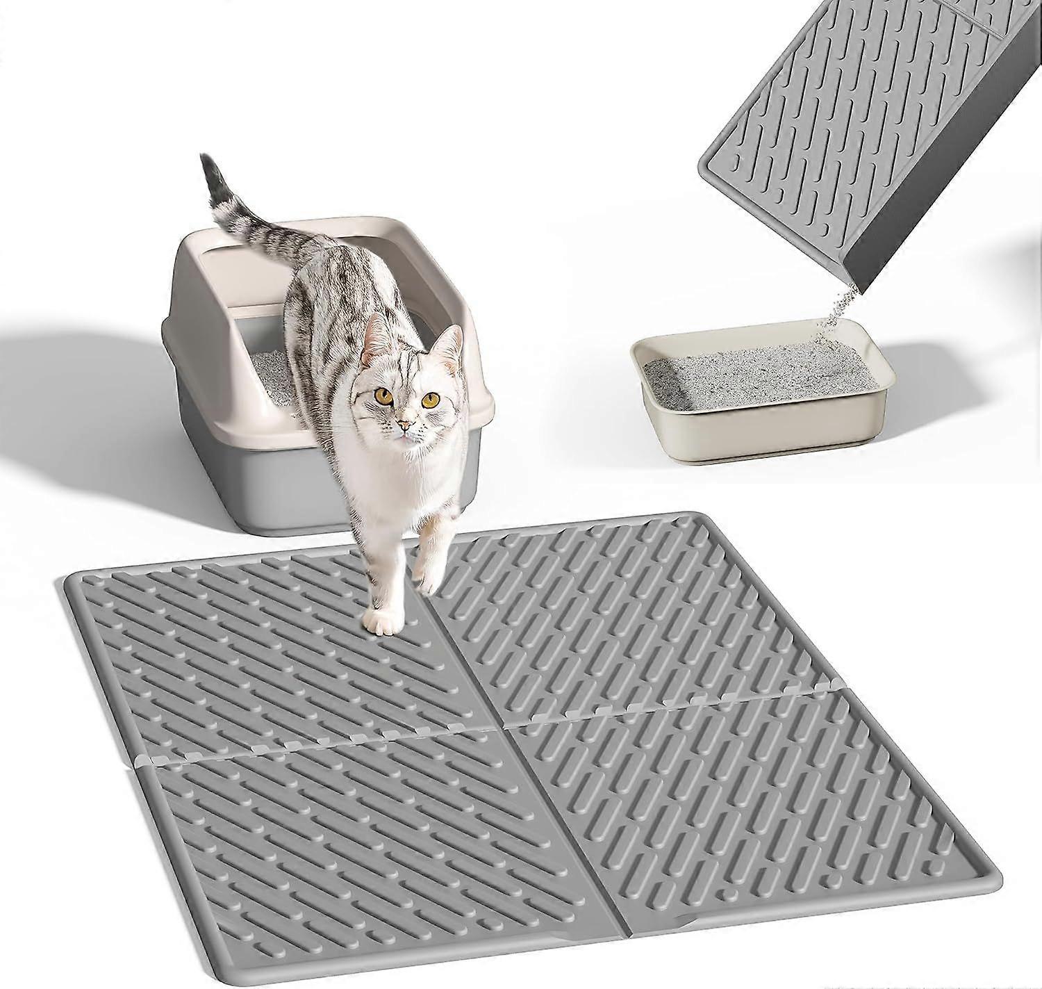 EASY TO COLLECT: Pieviev cat litter mat (30 x 24 inches) is designed to fit most litter boxes. Twill design with raised edges effectively prevents cat litter from spilling, easily catches stray cat litter, and keeps your space neat and organized. Creates a comfortable and clean environment for your pet. No more mess on the floor: The unique raised edges and grooves can quickly collect cat litter and debris from cat's claws, effectively catching scattered cat litter and keeping your home clean. Just give the cat litter catching mat a gentle shake, and the cat litter will fall back into the box, making it easy to maintain a tidy space. WATERPROOF ULTRA SOFT PADDLE: Our cat litter mat is durable, designed to prevent cats from scratching, and the soft litter box mat provides comfortable support for your cat's every step. 100% waterproof material prevents leaks, keeping your floor free from water and urine. Longterm use for active cats. MULTIPLE FUNCTIONS: Our cat litter collection mat can easily cover the entrance area of most litter boxes. Not only does it effectively capture cat litter, it can also be used as a feeding mat, placed under your cat's food and water bowls to catch spills and messes. The perfect cat accessory to create a clean, worryfree living space. Keep Clean Simple: Simply rinse the cat litter catcher with water, wipe off excess water, and air dry before using again. Whether vacuuming, wiping or rinsing, the Kitty litter mat can be easily cleaned without any hassle. Save time and energy, it is a convenient choice for every cat owner.