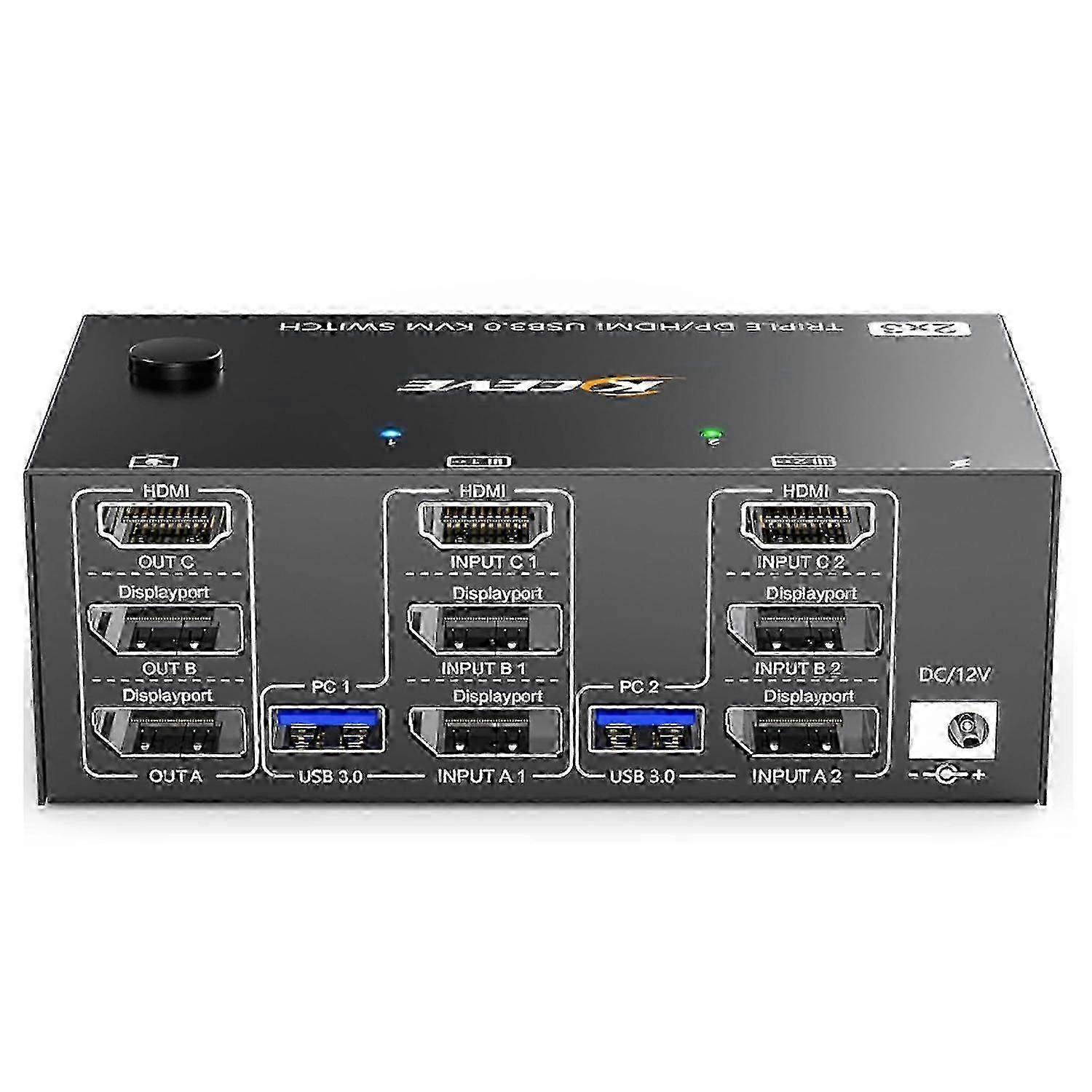 KC-KVM203DH 8K 30Hz USB3.0 DP+DP+HDMI Triple Monitors KVM Switch, EU Plug