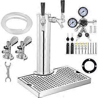 Kegerator-Tower-Kit, Dual-Taps-Bier-Umrüstsatz, Edelstahl-Fass-Bierturm-Zapfsäule mit Dual-Gauge-W21.8-Regler