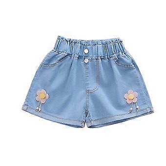 Mädchen Sommer Jeansrock mit Falten, Schleifenbesatz, Spitzenborte, elastischem Bund, lässigem, süßem Kurzrock mit Taschen
