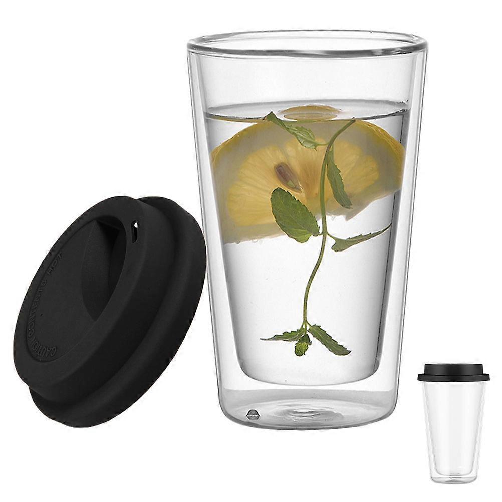 Clear Glass Coffee Mug With Lid Designed For Adults Black Double Wall Insulation 1Set