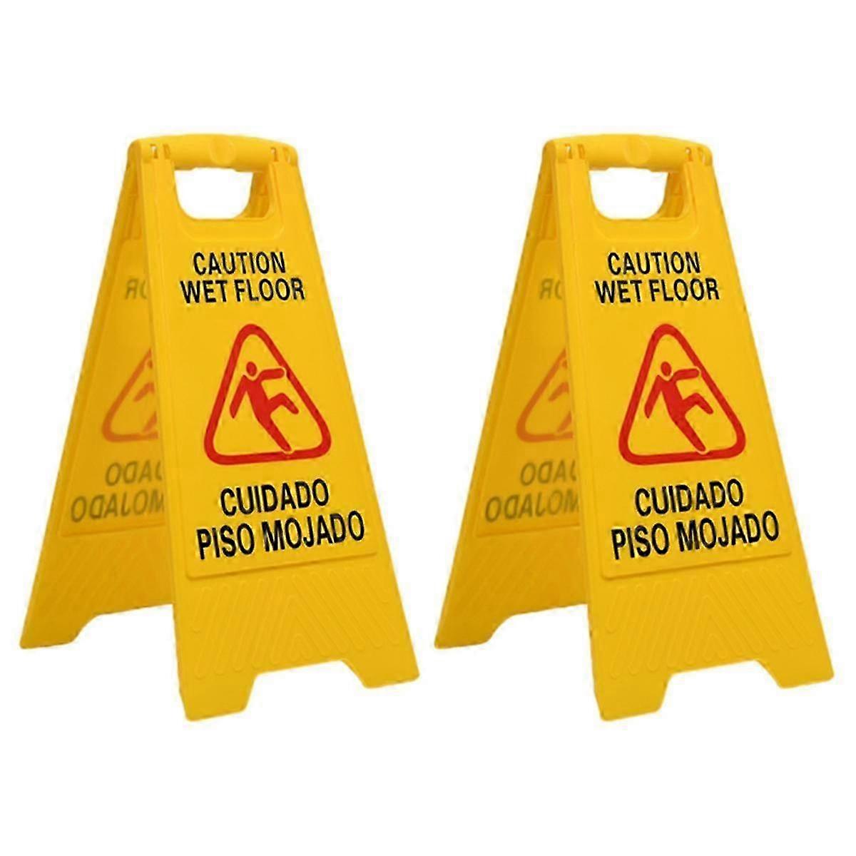 Clipless Handle Commercial Warning Wet Floor Signs, Herringbone Warning Signs 2 Pack