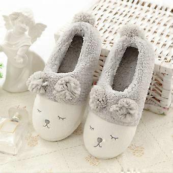 Damen Winter Tiermuster Plüsch Hausschuhe 26,5-27,5 cm, Home Baumwolle Hausschuhe mit Cartoon Tasche geformter Absatz, kleine Baumwollfleece bestickte Hausschuhe