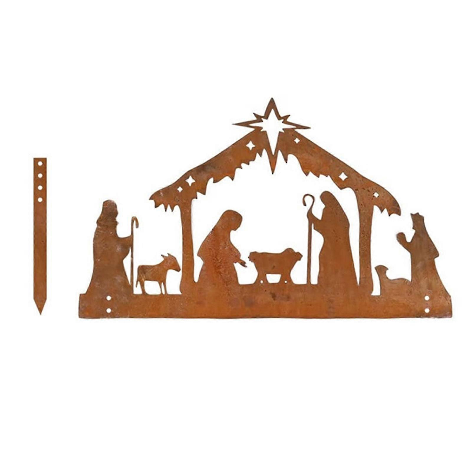 Nativity Scene Silhouette Decor Durable Material With Metal Stakes
