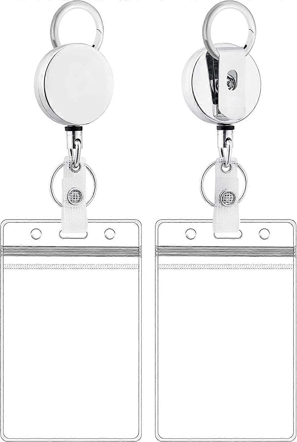 Plastic ID Holder with Retractable Reel Set, Vertical Badge Holder with Reel Holder Silver 2-Pack