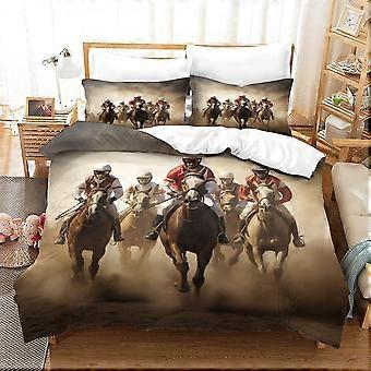 o4242 Bettlaken Pferderennen Bedruckter Bettbezug Set Weiche Mikrofaser Bettwäsche Set für Erwachsene Teenager Kinder 3Pcs mit Reißverschluss für Home Decoratio