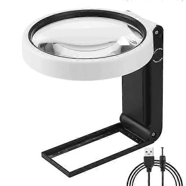 Large 4.35-Inch Magnifying Glass 10x 30x with Light and Stand, Handheld Standing LED Illuminated Magnifier 110MM