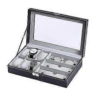 Leder 6-Bit Uhr + 3-Bit Augenuhr Aufbewahrungsbox Brille Gehäuse