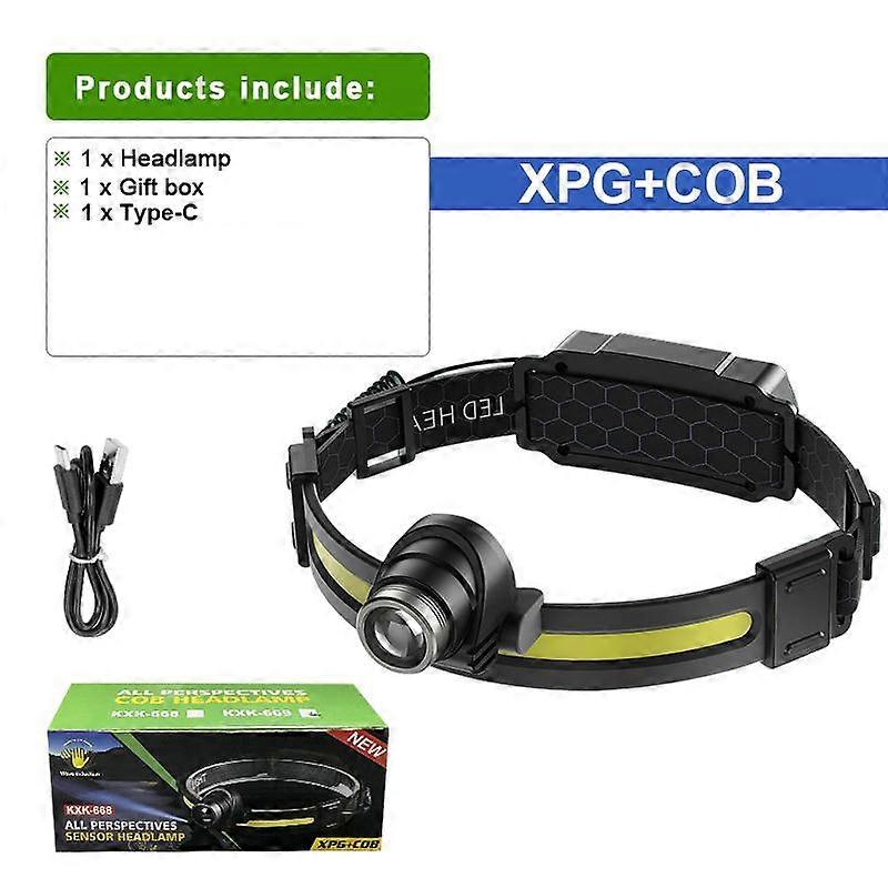 Powerful LED Headlamp XPG COB Sensor Head Lamp Light Built in 1200mAh Battery with Type-c Charging
