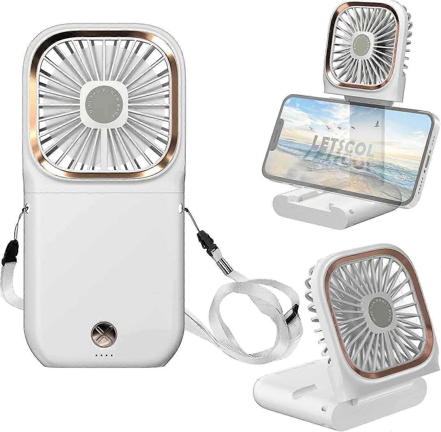 LINJOU Necklace Fan, Handheld Mini Fan, Portable Neck Fan, Small Foldable Pocket Fan, Personal Desk Fan for Adults Women Makeup (White)