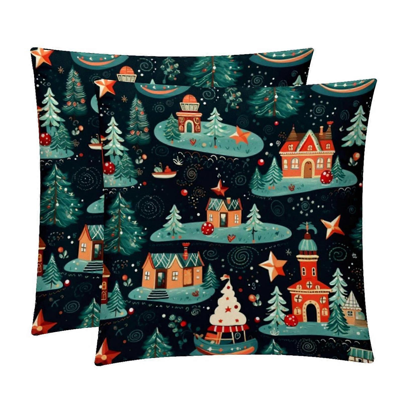 Luxury Velvet Christmas Pillow Inserts Set of 2, 16x16 to 20x20 in - Unique Patterns, Perfect for Throw Covers & Home Decor