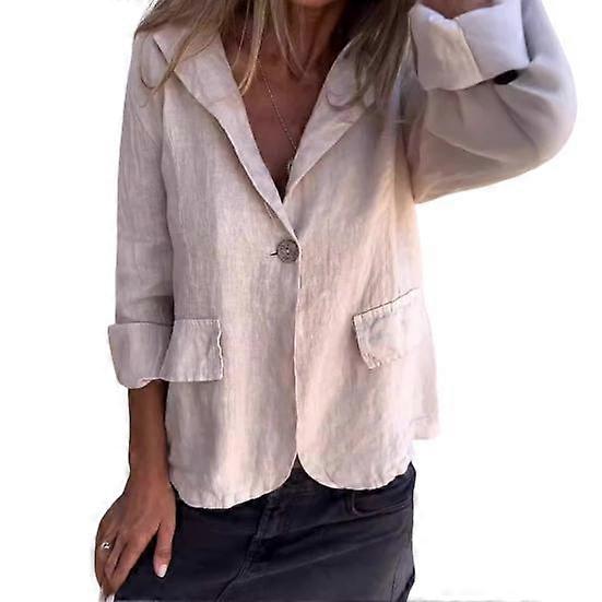 Coat Lapel Long Sleeve Flap Pockets Suit Jacket Solid Color One Button Loose Work