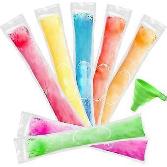Disposable Popsicle Bags with Funnel for Kids and Adults - 100pcs Freezer Tubes with Zip Seals for Homemade Ice Pops, DIY Frozen Treats, Reusable Ice