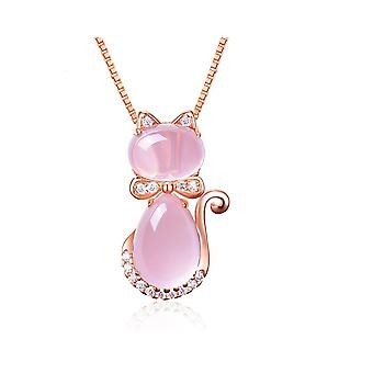 Rosa Katze Anhänger Halskette Ross Stein Quarz Opal Niedliche Roségold Versilberte Kette Halskette