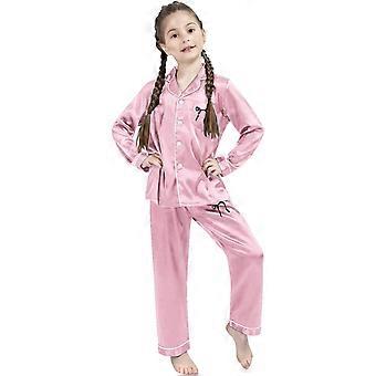 Damen Seidensatin Pyjamas Kurzarm Loungewear zweiteilige Nachtwäsche Button-down Pj Set-pink