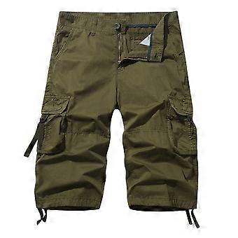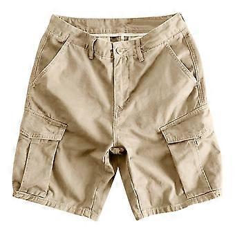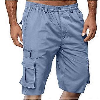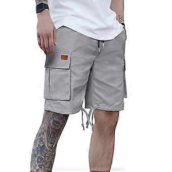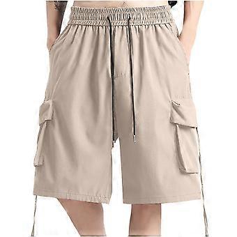 Herren-Shorts, Sommer, Freizeit, einfarbig, mit Taschen, Kordelzug, elastischem Bund und bequemer Cargohose, Größen S-3XL